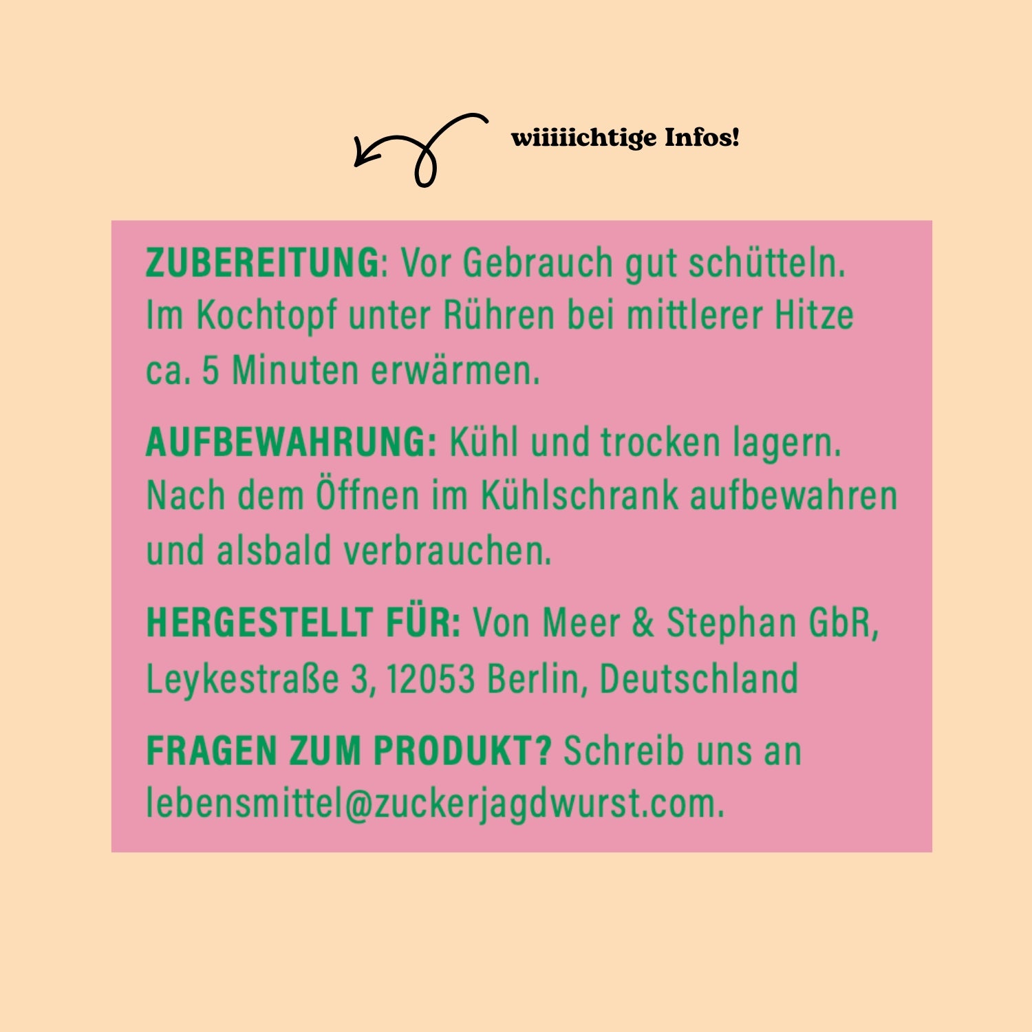 💌 Fragen zum Produkt? Schreib uns an lebensmittel@zuckerjagdwurst.com.